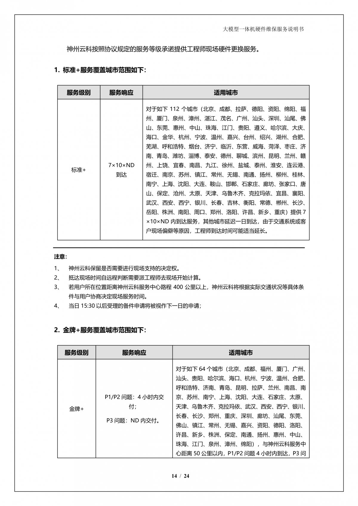 神州A924 DS大模型一体机硬件维保服务说明书_V1.1